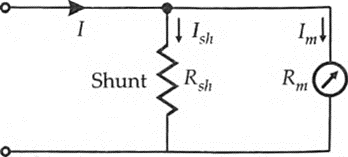 When heavy currents are to be measured, the major part of the current is bypassed through a low resistance called a “shunt”. Figure shows the basic movement (meter) and its shunt to produce an ammeter.